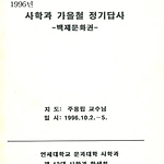 1996 가을, 백제 『1996년 사학과 가을철 정기답사』 1996. 10. 2 ~ 5 연세대학교 문과대학 사학과 제12대 사학과 학생회 {준비중} 구글 드라이브로 다운로드(2.87MB)판형 : B5(?)쪽수 : 98 목차 {준비중} 자료 해제 1996년 가을 정기 답사 자료집이다. 지도교수 : 주용립